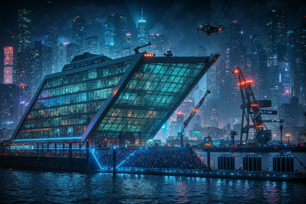 Vom Elbufer direkt in den Hyperraum – das Dockland ist nicht mehr wiederzuerkennen, sobald die KI die Architektur zu Ende denkt.